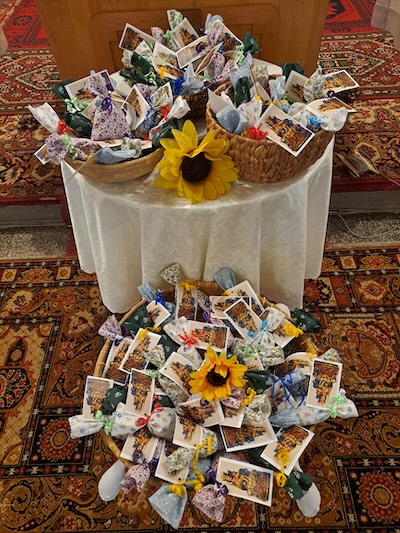 am 15. August, dem Hochfest Mariens Aufnahme in den Himmel, Kräuter gesegnet. Stimmungsvoll und mit ergreifenden Worten zelebrierte P. Engelbert Jestl CssR an diesem wunderbaren Sommerfeiertag mit der Gemeinde den Festgottesdienst. Ein herzliches Dankeschön an die vielen fleißigen Hände, die in mühevoller Kleinarbeit 70 Kräutersäckchen genäht, gefüllt und gebunden haben. Heuer mit einem Bild aus dem 14. Jahrhundert aus der Pfarrkirche in Rankweil, der „Sitzmadonna“
